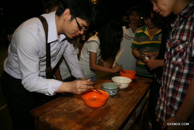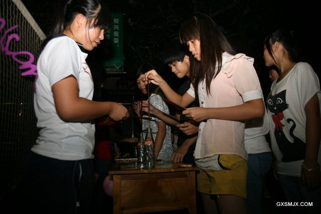 游园会中有多项趣味性极强的娱乐项目,而且还有获得精美奖品的机会,形式新颖的活动吸引了众多过往同学的驻足参与。刺激且充满娱乐的“猜谜”游戏令大家留连忘返,明了答案的同学露出会意的微笑,那是胜利的喜悦,是智慧之光的绽放;会场中的“越障碍端盘子”游戏也很有意思,不仅娱乐了身心,还锻炼了参赛者的职业技能,一举两得;一些班集体不约而同的选择了“筷子掷空瓶”的游戏,游戏看似简单实际上难度极大,由于啤酒瓶口极小,,所以很难将筷子垂直掷入瓶中,但参与者依然不怕艰难,不亦乐乎。虽天色已晚,但大家热情不减,欢笑声不绝于耳。