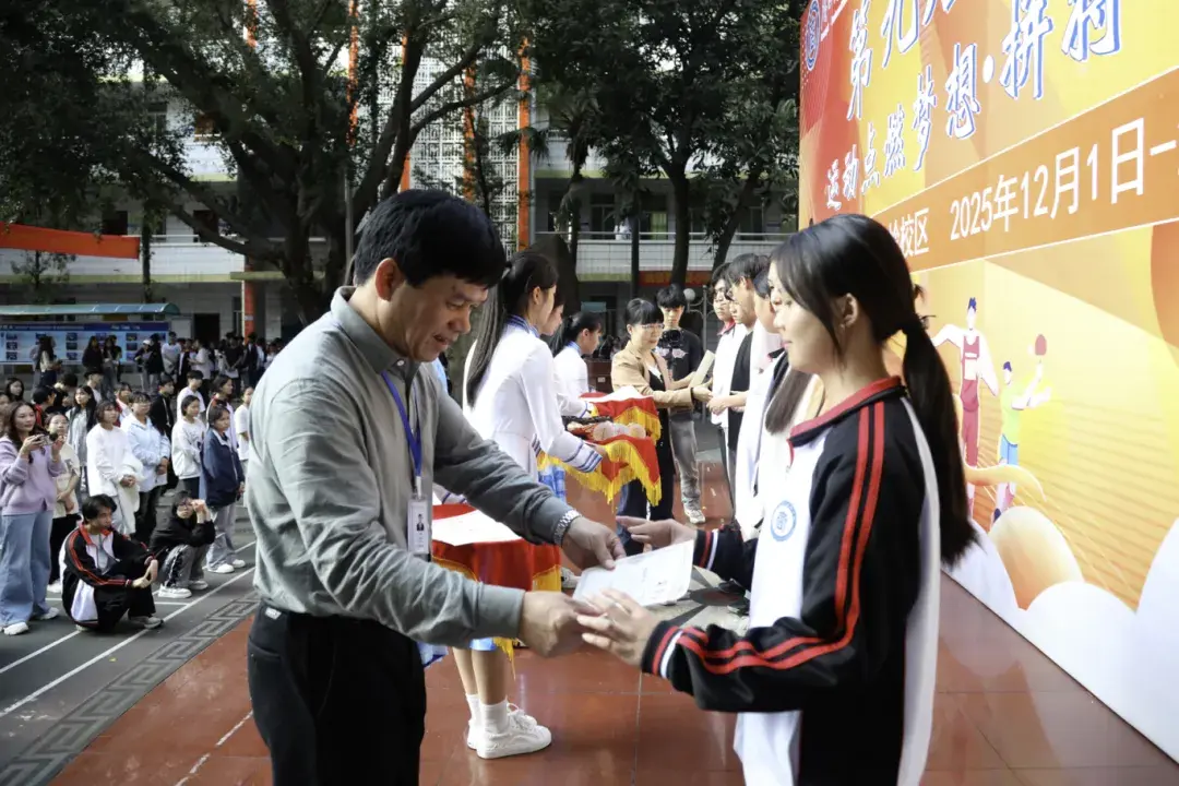 寒风吹不散热血,冬日挡不住激情。经过五天激烈角逐,我院2025年第九届运动会圆满完成了各项赛事。12月2日、5日下午,我院先后于大岭、明阳校区隆重举行运动会闭幕式。学院全体师生参与活动。两校区闭幕式分别由教务科科长刘艳飞和副科长韦任嫣主持。