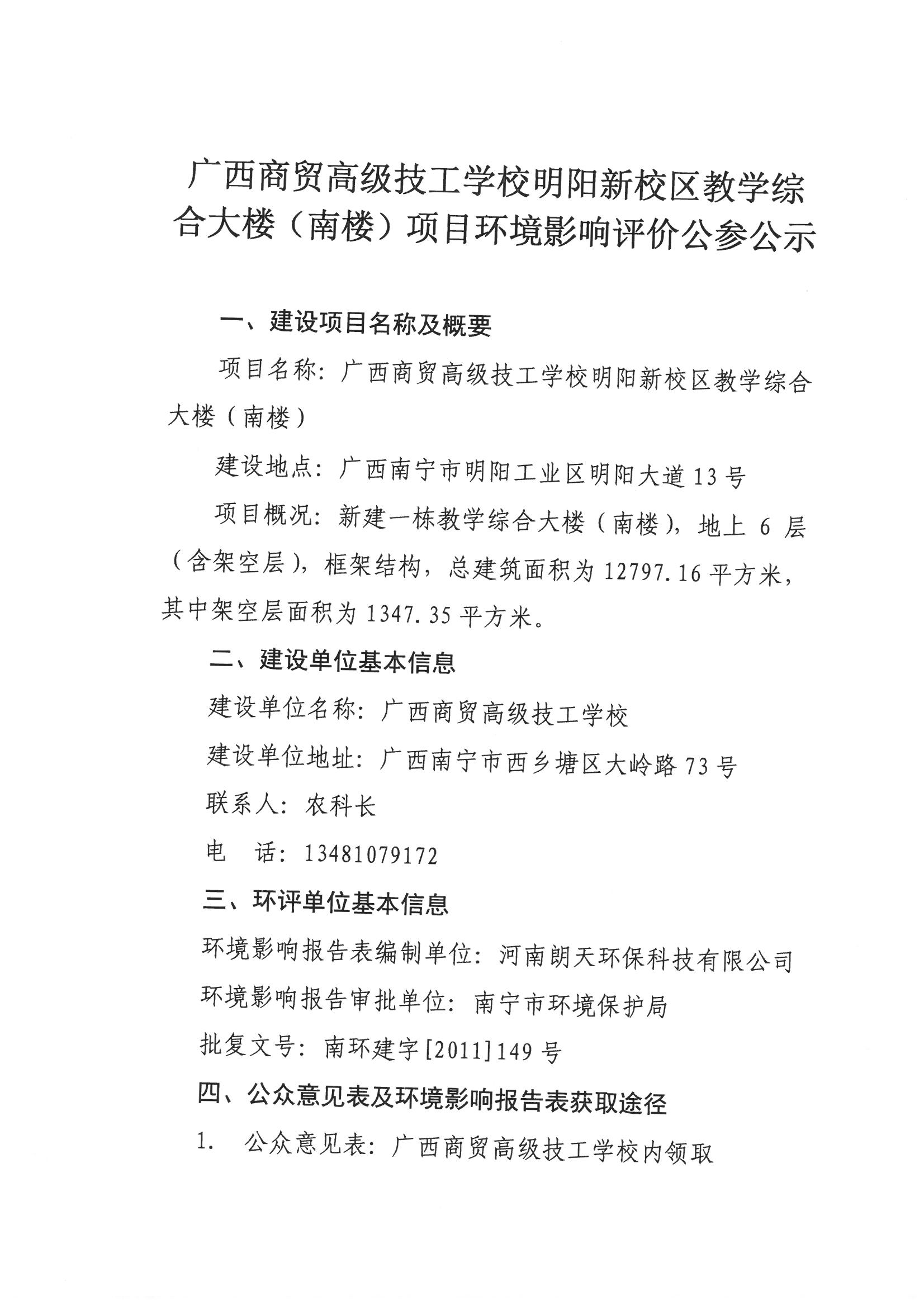明阳新校区教学综合大楼(南楼)项目环境影响评价公参公示