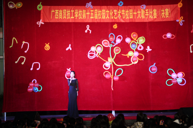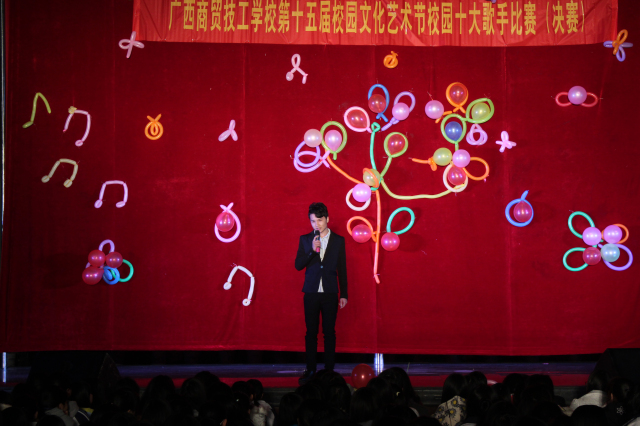 快乐的音符拨动着和谐的琴弦,激扬的旋律奏响了青春的篇章。12月10日19时30分,由校团委主办的广西商贸技工学校第十五届校园文化艺术节“校园十大歌手”决赛在灯光球场激情开唱。通过之前的海选,共有20名选手进入本次总决赛。副校长何佳林、校办公室主任梁朝阳、学生科科长陈煜等9名老师应邀担任了本次大赛的评委。全校师生共同欣赏了这场视听盛宴。