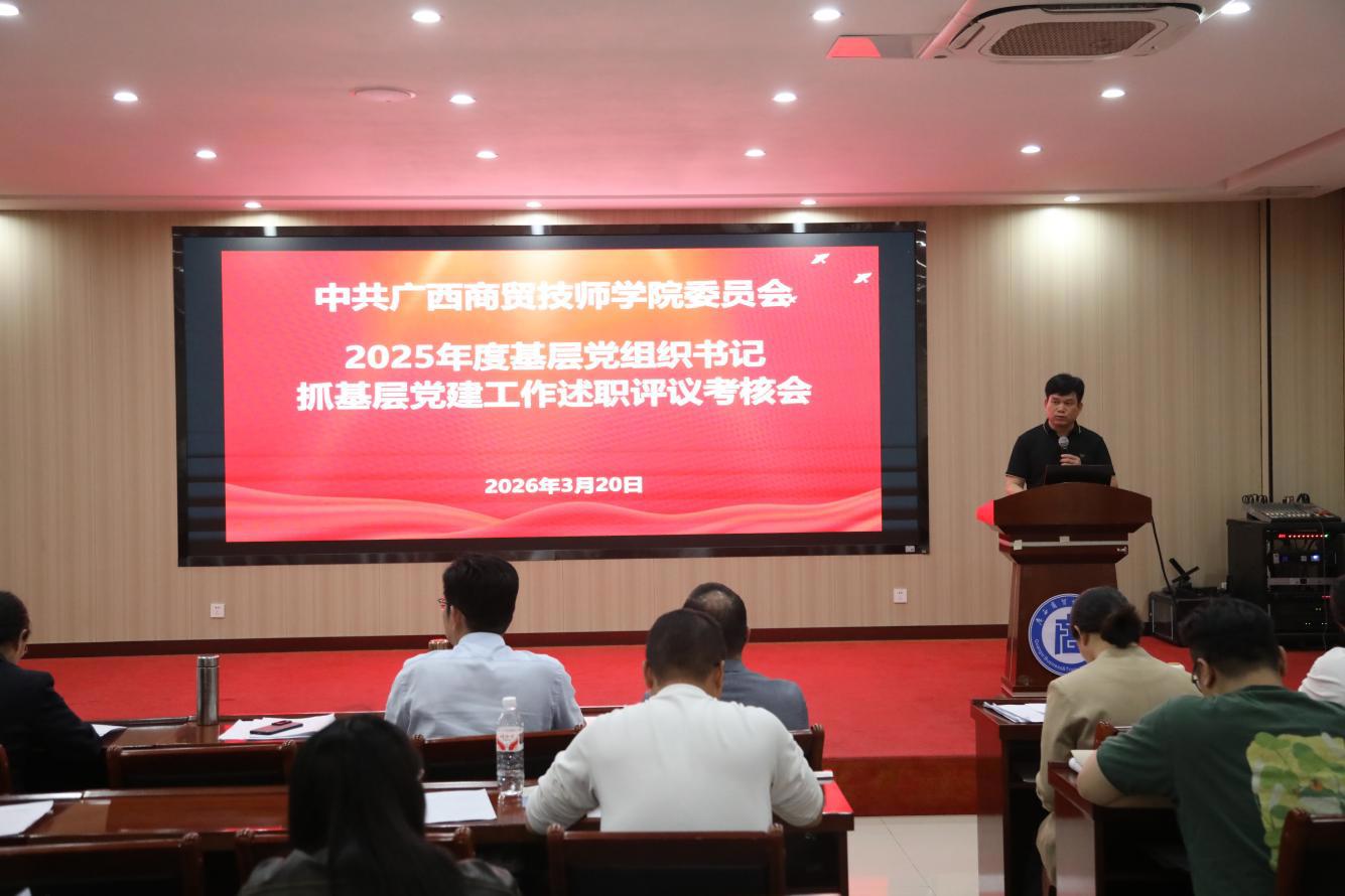 3月20日下午,广西商贸技师学院2025年度基层党组织书记抓基层党建述职评议考核会在明阳校区笃学楼一楼报告厅召开。学院党委书记宋成多出席会议并讲话,党委副书记、院长李洁琛及其他领导班子成员、党委委员、纪委委员、各支部委员及党员代表参加会议。会议由学院党委委员、党建办主任陆菲菲主持。