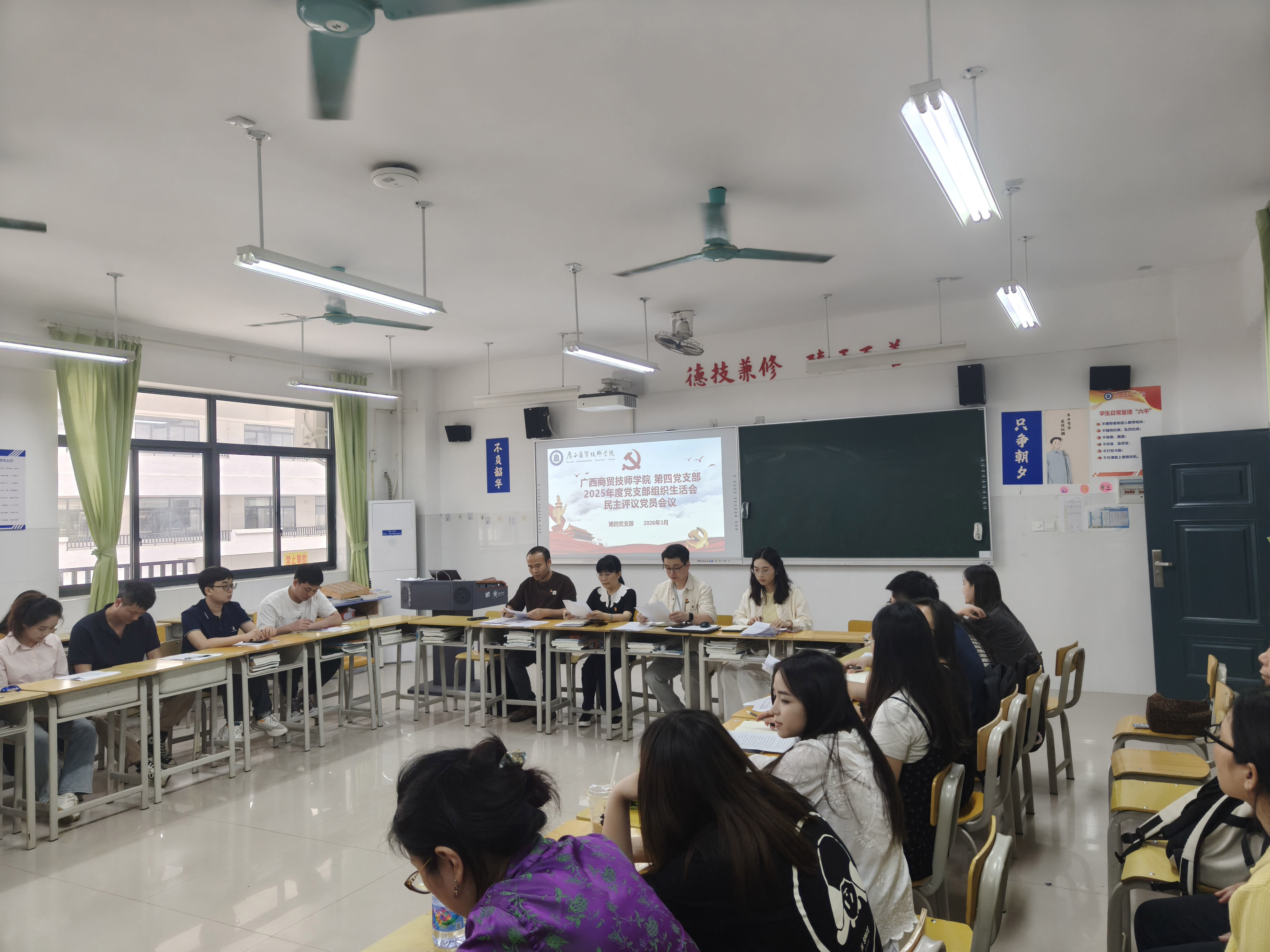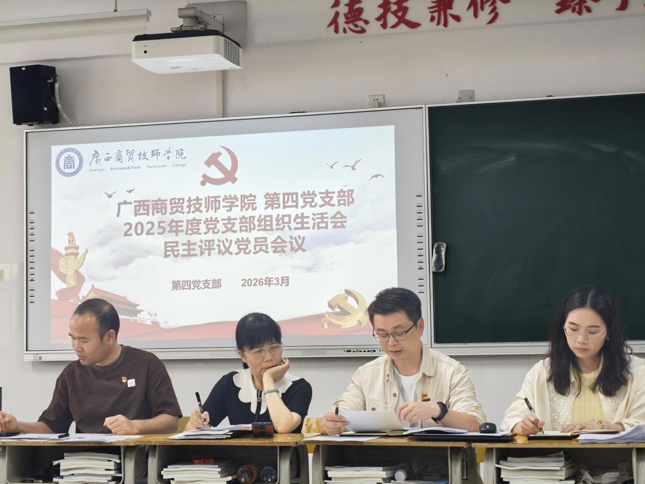为深入学习贯彻习近平新时代中国特色社会主义思想,全面贯彻落实党的二十届四中全会精神,扎实落实党内组织生活制度,2026年3月27日14时,第四党支部在明阳校区笃学楼南楼2-7教室,召开2025年度组织生活会和民主评议党员会议。此次会议由党支部书记陈世辉主持,支部发展对象、积极分子列席会议。