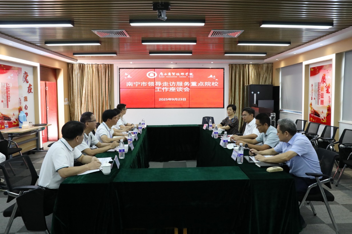9月23日上午,南宁市副市长徐科峰率队莅临我院大岭校区调研指导,市发展改革委副主任务腾飞、市商务局副局长陶琳、西乡塘区四级调研员陆永龙等陪同。我院党委书记、院长宋成多,党委委员、副院长李洁琛及相关科室负责人热情接待,并召开座谈会。