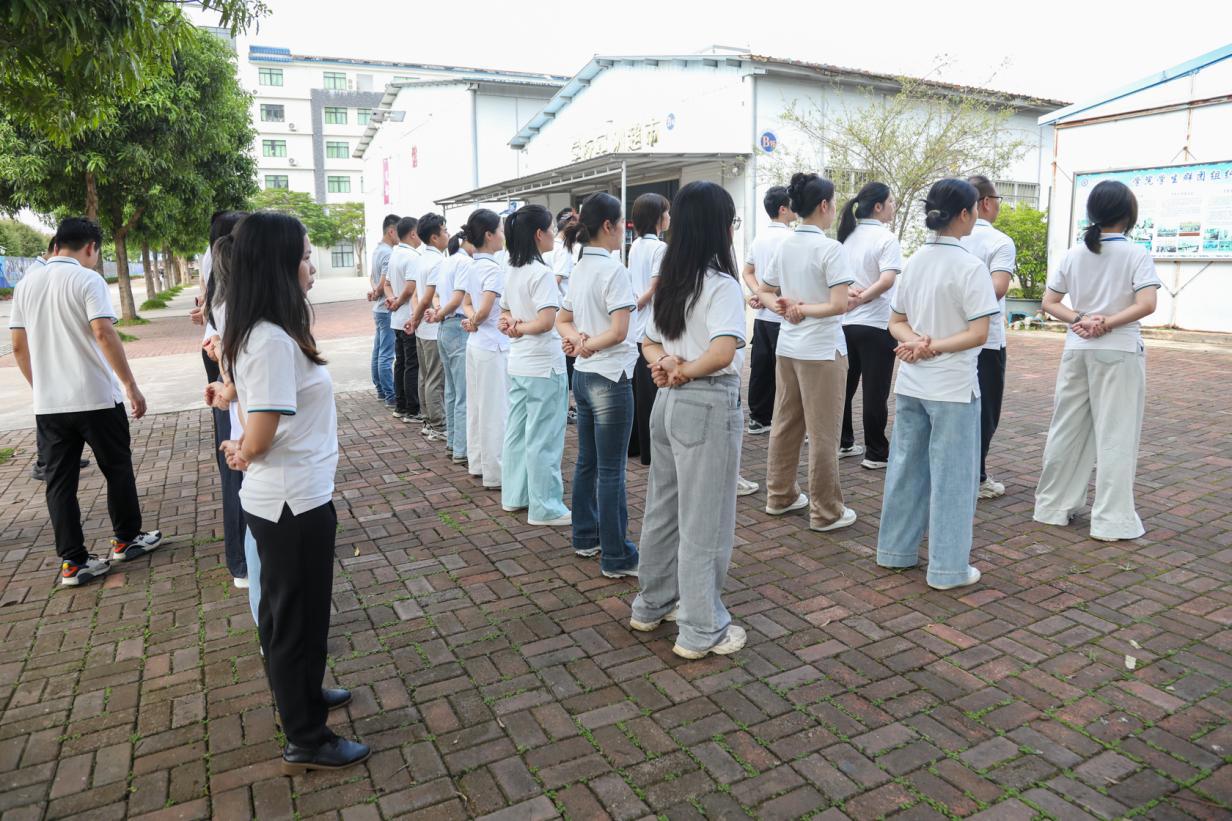 近日,我院在推进学生以“形”化“行”专项整治工作中,对班主任的班级管理水平提出了更高的要求。为强化学生日常行为管理、巩固整顿成果,推动后续工作落地见效,10月10日下午,学院特在明阳校区开展班主任专项素质拓展训练。学院党委书记、院长宋成多,党委委员、副院长岑锦华亲临现场。本次素质拓展参训人员包括明阳校区班主任、体育教师、学生科与保卫科工作人员及教官队伍。