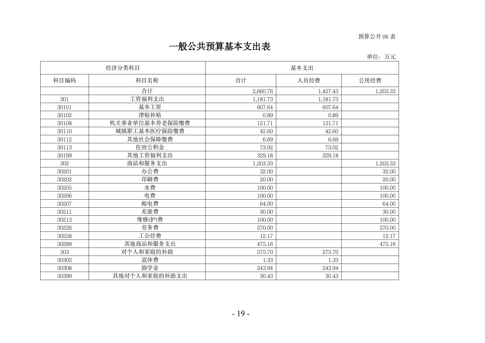 2019年一般公共预算基本支出2660.76 万元,占支出总预算59.18%,同比增加779.76万元,增幅41.45%。