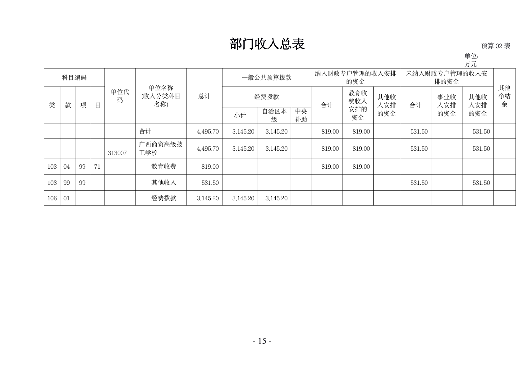 2、财政专户管理资金是指部门征收的非税收入上缴财政专户管理的资金,包括学费、住宿费、实验实习原材料费等。