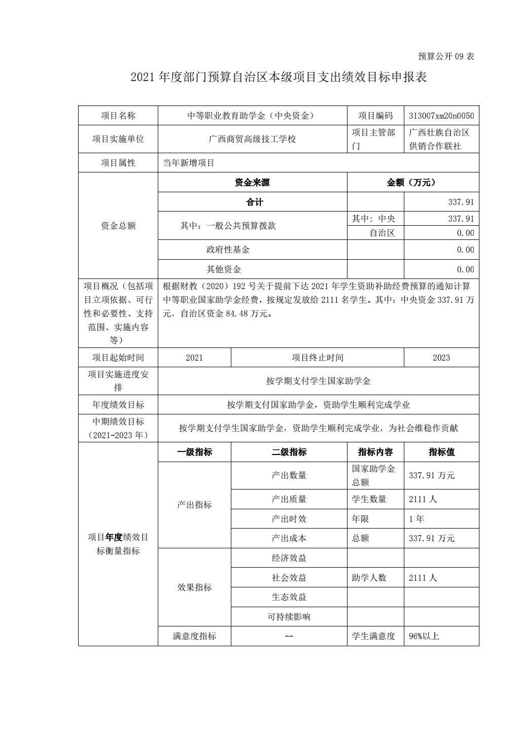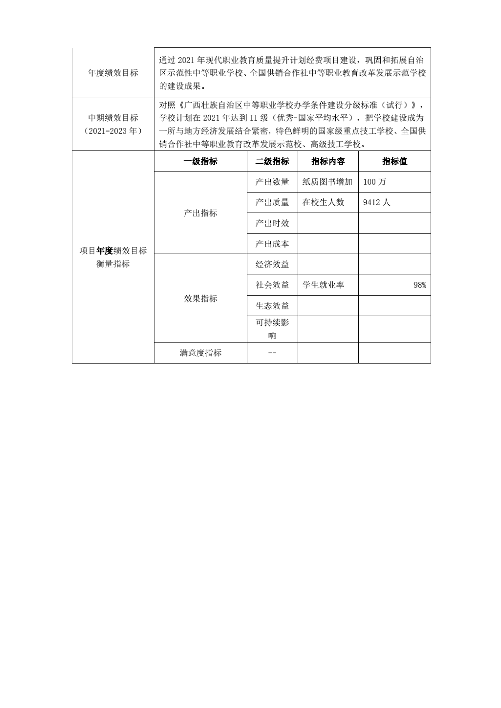 2021年绩效目标预算公开