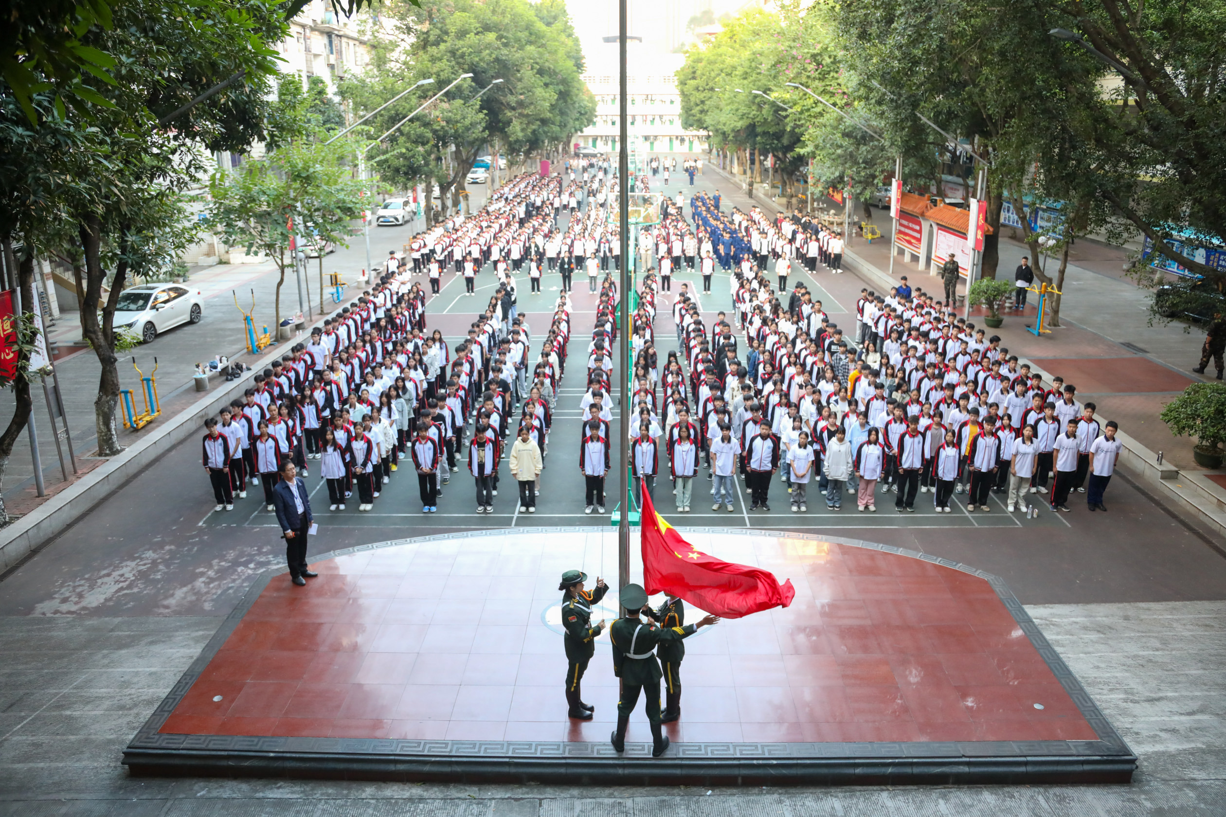 明阳校区升旗仪式现场