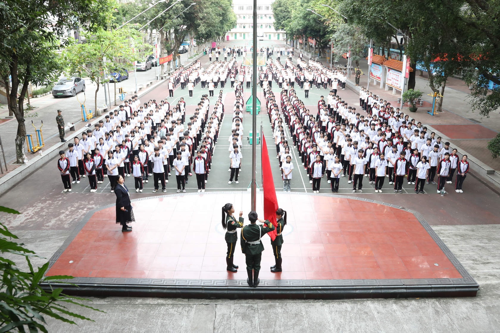 明阳校区升旗仪式现场