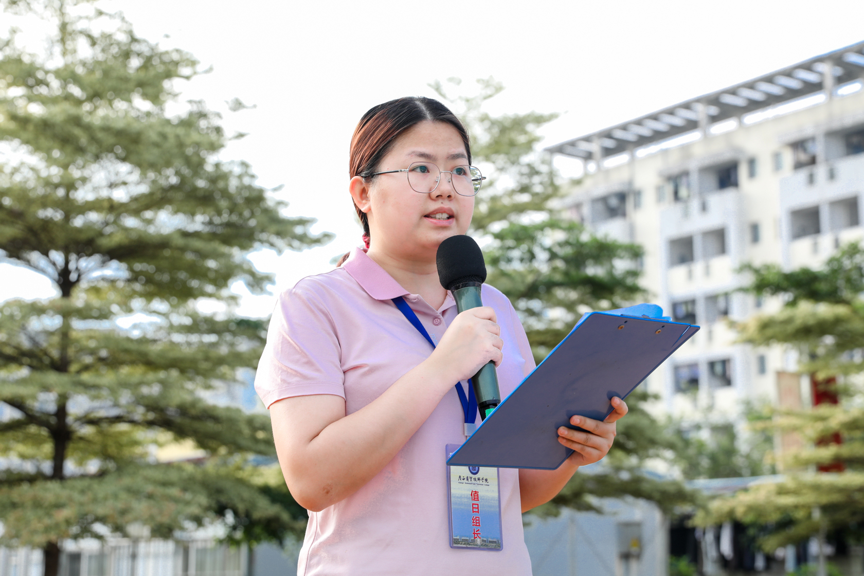 6月9日清晨,我院在大岭、明阳校区举行升旗仪式。礼毕,党委专职副书记、工会主席周安和教务科副科长黄炜作国旗下讲话。