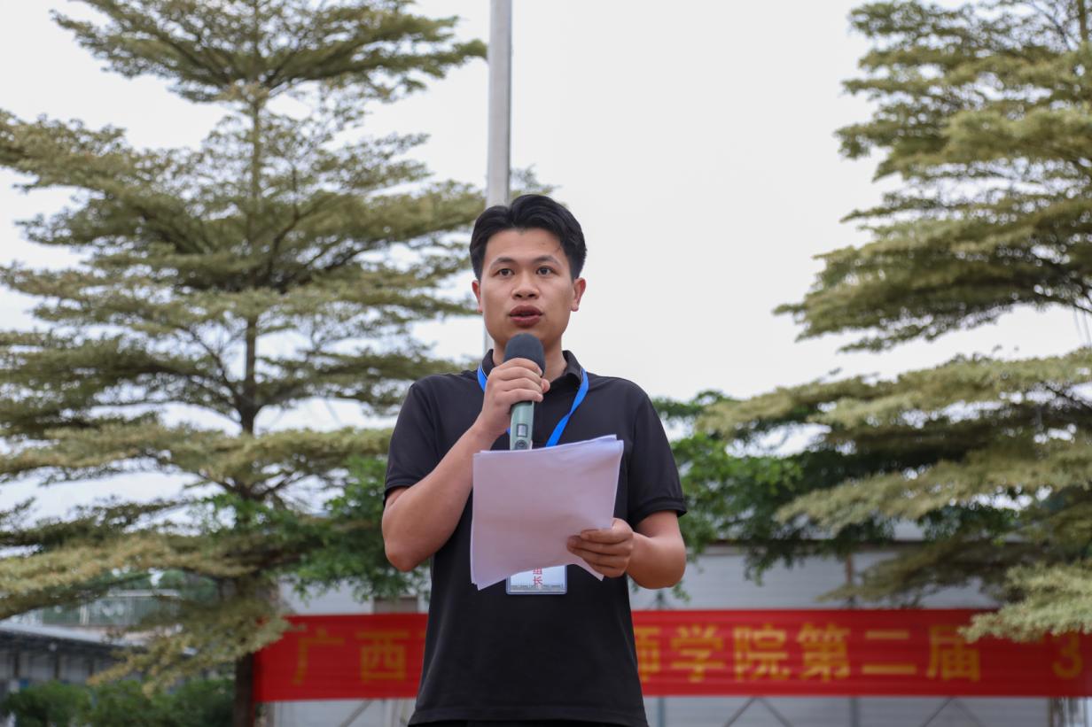 4月27日清晨,我院在大岭、明阳校区举行升旗仪式。礼毕,学院学生科副科长程聪、总务科副科长李珩鑫作国旗下讲话。