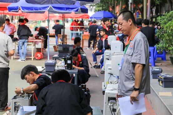 姚敏老师担任空调装配赛区的主评委
