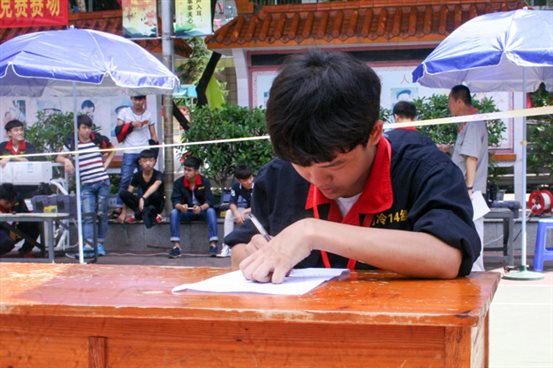 参赛的同学在填写空调装配知识答卷