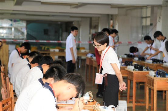 曹付锦老师为汽车起动机拆装比赛的评委
