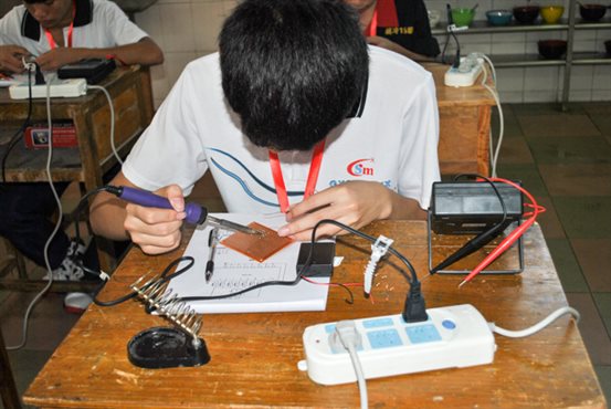 参赛的同学在焊接电路板