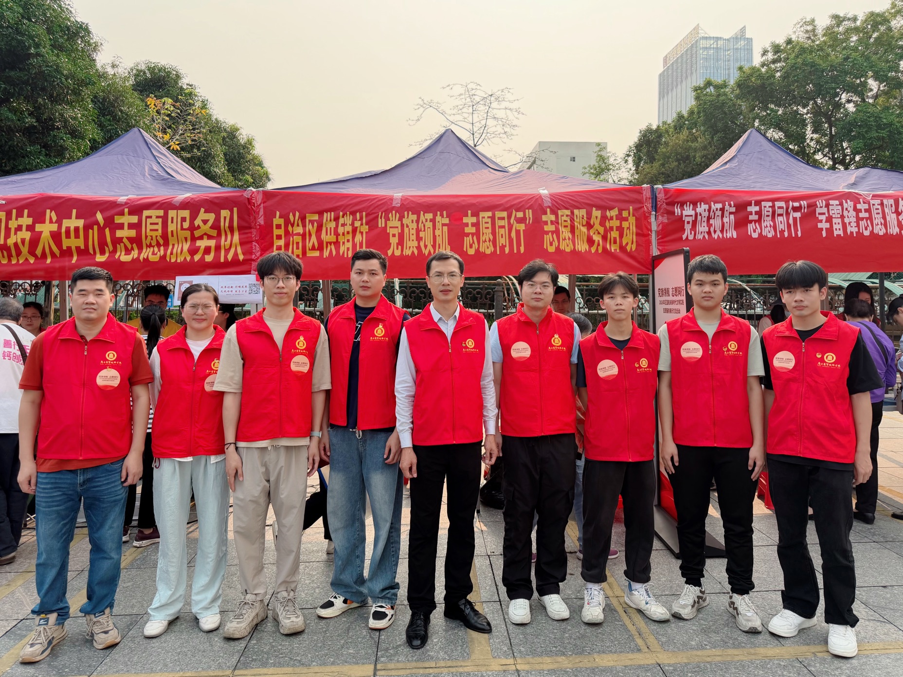 为深入学习贯彻党的二十届四中全会精神,认真贯彻落实习近平总书记致中国志愿服务联合会第三届会员代表大会重要贺信精神,大力弘扬雷锋精神、志愿精神,2026年3月31日上午,广西商贸技师学院保卫科科长、团委书记黄立杰带队,青年教师代表彭冰鑫、彭江华、陈丽洁及团委教师,学生代表共9人前往广西科技馆,参加由自治区党委区直机关工委、自治区党委社会工作部、自治区科协联合主办的“党旗领航 志愿同行”2026年区直机关新时代文明实践志愿服务展示交流活动。