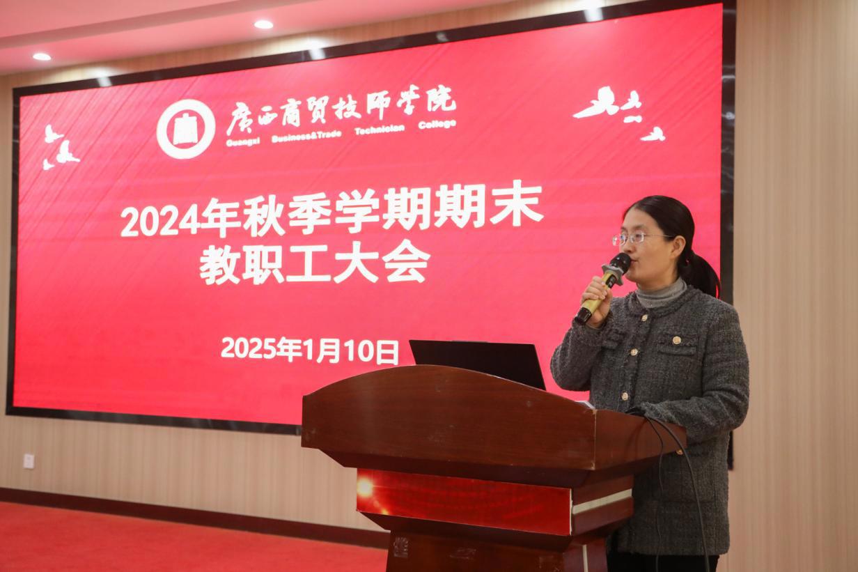 为进一步凝聚共识,全面梳理总结2024年度工作成果,规划新一年的发展目标,我院于1月10日上午在明阳校区笃学楼报告厅,召开2024年秋季学期期末全体教职工大会。大会由党委委员、副院长李洁琛主持。