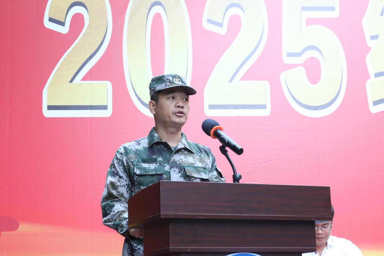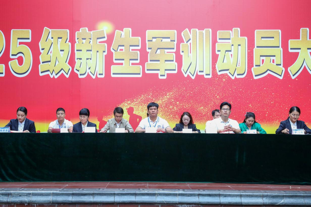 继明阳校区军训圆满落幕后,10月21日上午,我院大岭校区2025级新生军训动员大会接力召开。学院党委书记、院长宋成多,党政领导班子成员,各部门负责人,2025级全体新生、班主任及承训教官参会,大会由学生科科长党斌主持。