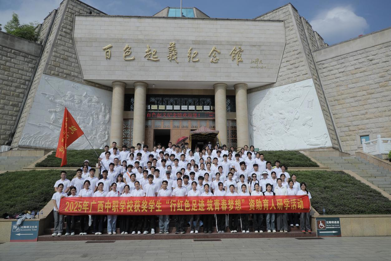 广西中职学校全体获奖学生代表在百色起义纪念馆前合影