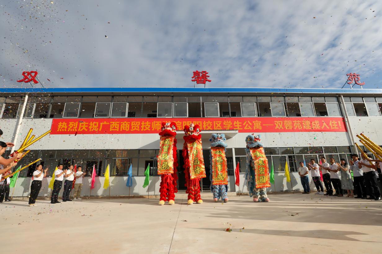 10月23日上午,我院隆重举行明阳校区学生公寓双馨苑建成入住仪式。学院党委书记、院长宋成多,党委委员、副院长岑锦华、李洁琛出席活动,相关科室负责人、预备技师班班主任及新生参与本次活动。