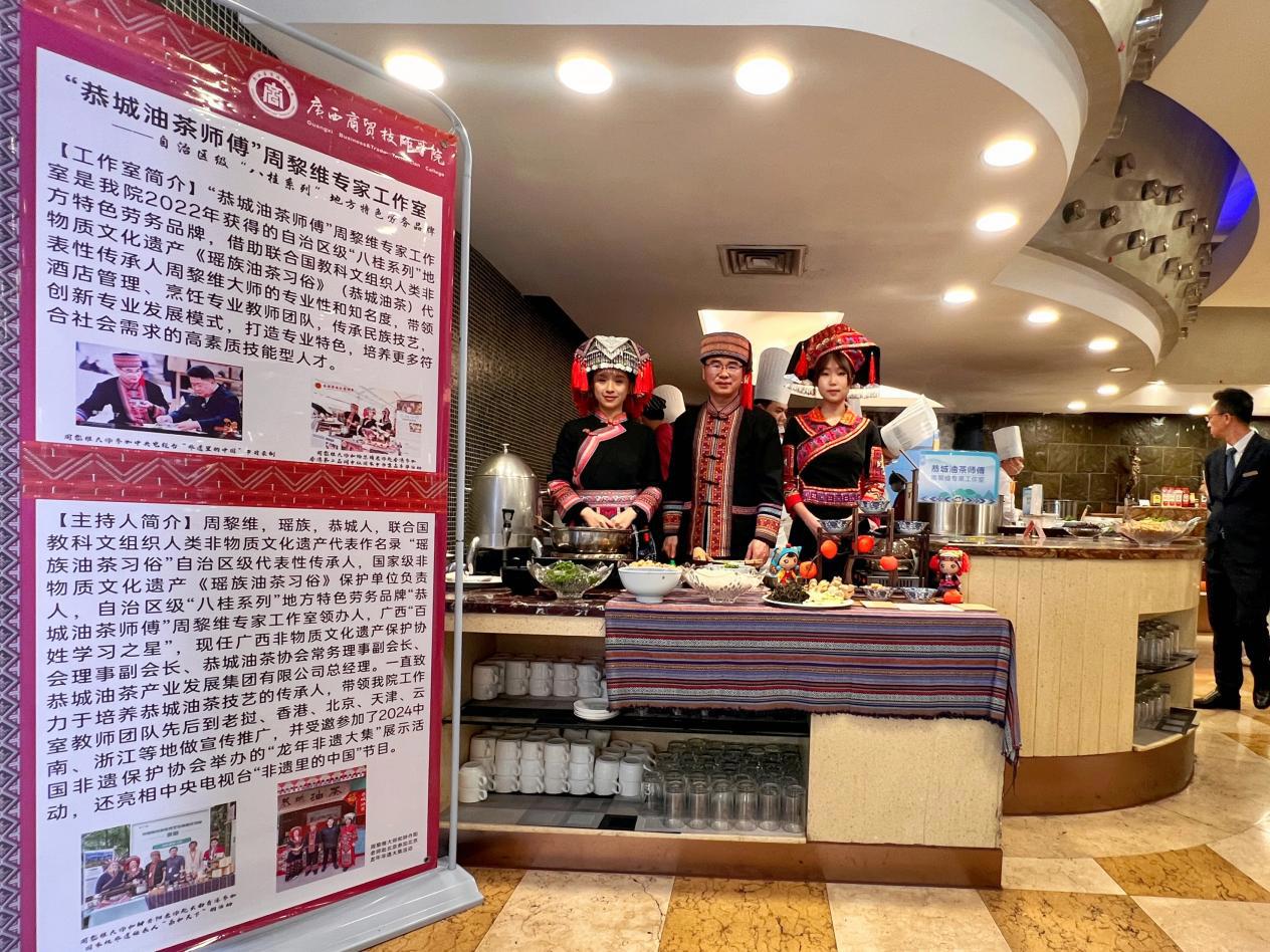 恭城油茶师傅周黎维专家工作室依托广西商贸技师学院教学资源,深耕技艺传承与创新,通过系统化培训培育了大批专业人才,以劳务品牌为纽带带动群众就业创业,为地方特色产业发展注入活力。此次亮相,既是对品牌建设成效的肯定,更是交流学习、提升品牌影响力的重要契机。