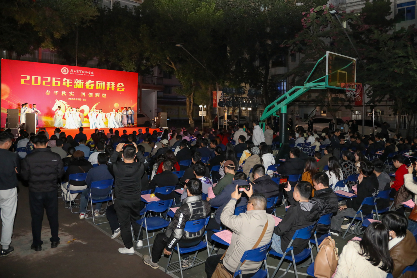 1月15日晚上,在学院工会的精心组织与周密筹备下,我院2026年教职工新春团拜会在大岭校区隆重举行。学院党委书记宋成多、党委委员、院长李洁琛等领导出席晚会,全体教职员工欢聚一堂,共迎新春,互致祝福。