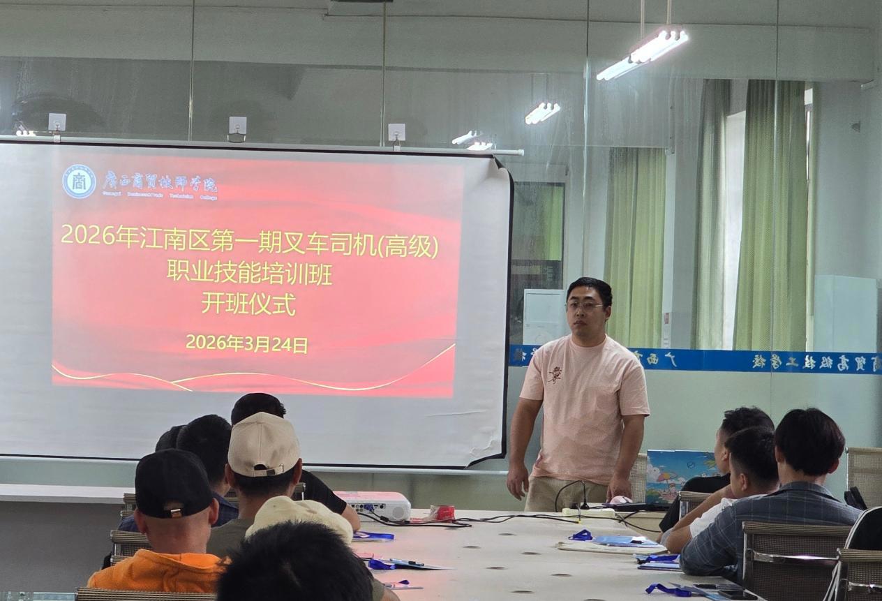 近日,我院在明阳校区顺利开展2026年南宁市江南区首期叉车司机补贴性技能培训班,本期培训班的培训时间为2026年3月24日至4月2日,培训人数48人,学员主要来自农村转移劳动力、城镇失业人员等群体。